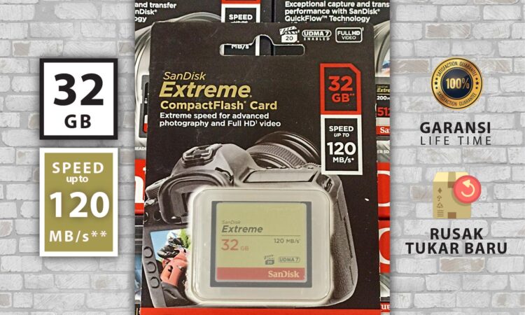 Dapatkan kelengkapan produk: 1x SanDisk Extreme CompactFlash Card (SDCFXSB).