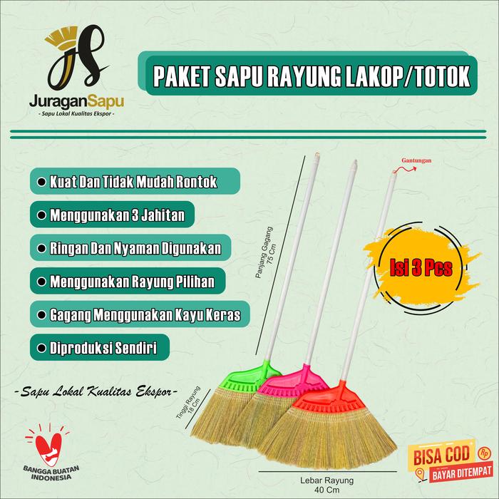 | Jumlah dalam Paket | 3 buah sapu lantai rayung premium |