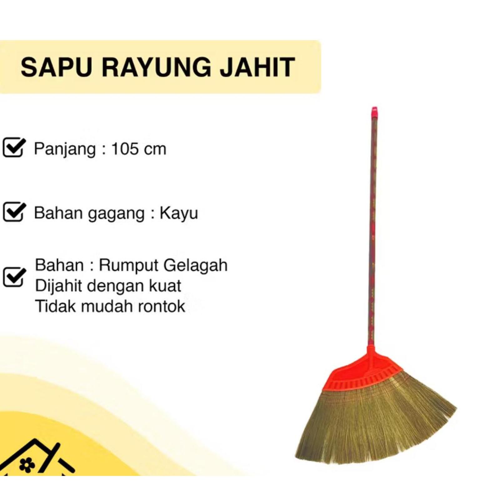 | Bahan Berkualitas | Terbuat dari rumput gelagah pilihan yang dirajut kuat, menjamin sapu tidak mudah rontok dan tahan lama. |