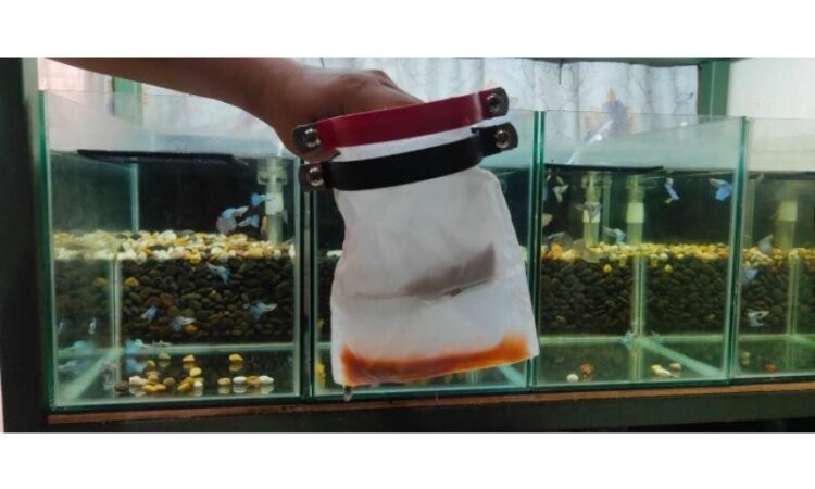 - Gunakan lapisan merah untuk memisahkan cangkang, lalu ambil Artemia bersih dari lapisan hitam.