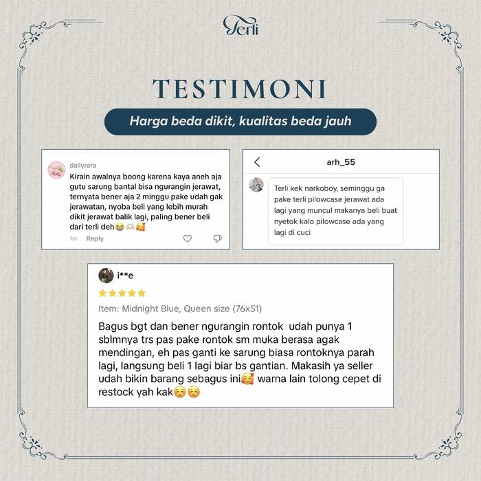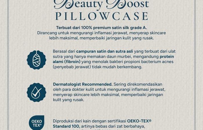 Tidur bukan sekadar istirahat, melainkan momen krusial untuk regenerasi kulit. Manfaatkan momen ini dengan optimal menggunakan sarung bantal premium dari Terli Beauty. Dibuat dari 100% Satin Silk grade A, sarung bantal ini dirancang khusus untuk kesehatan kulit dan rambut tanpa perlu menguras kantong.