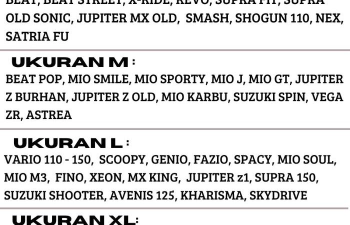 Tersedia dalam dua kategori utama, yaitu tipe Promo dan Non-Promo, untuk memberikan pilihan yang sesuai dengan kebutuhan dan budget Anda. Cocok untuk berbagai jenis sepeda motor. Pastikan motor Anda selalu tampil prima dan terlindungi.