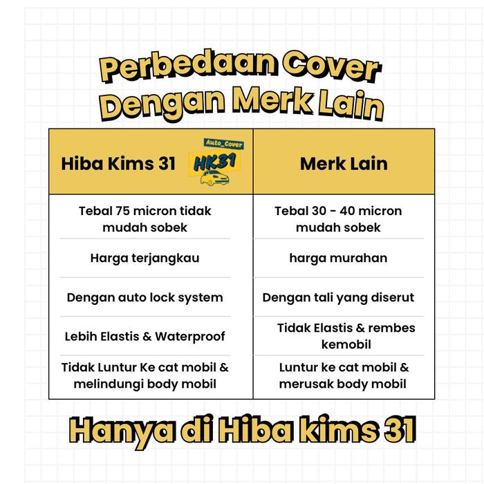 Lindungi investasi mobil Anda dengan Sarung Mobil Bening Premium Hiba Kims 31. Dirancang untuk penggunaan indoor dan outdoor, cover transparan ini cocok untuk semua merek dan tipe kendaraan. Terbuat dari bahan plastik LDPE+ berketebalan 75 micron, sarung ini menjamin perlindungan superior.