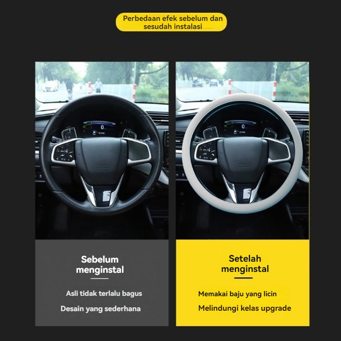 Nikmati berbagai manfaatnya: melindungi kulit setir asli agar tidak cepat rusak akibat keringat atau paparan sinar matahari, menutupi cacat yang sudah ada, serta menambah kesan elegan dan gaya pada kabin mobil Anda.