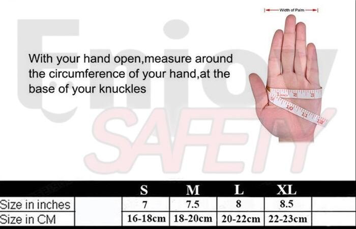| Ukuran | Lebar Telapak Tangan | Lebar Pergelangan Tangan |