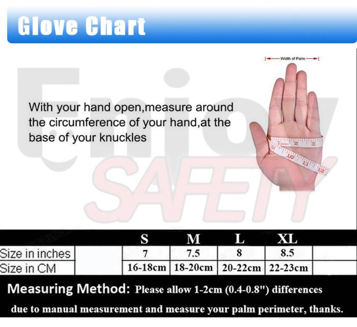 | Ukuran | Lebar Telapak Tangan | Lebar Pergelangan Tangan |