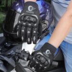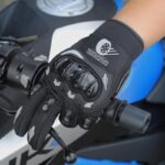 - Telapak tangan berbintik karet meningkatkan cengkeraman pada stang motor.