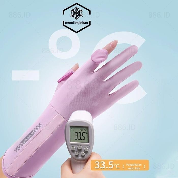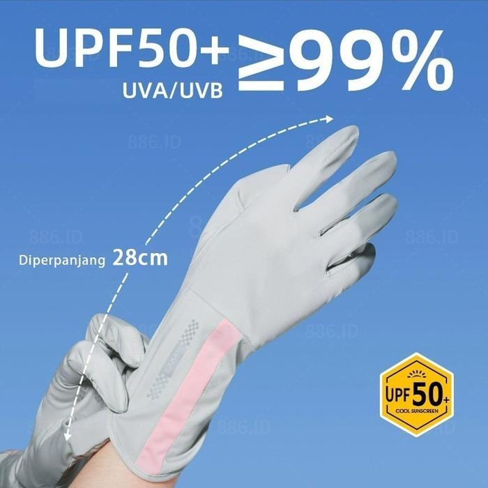 Sarung tangan motor ini dirancang khusus untuk wanita dengan perlindungan maksimal dari sinar ultraviolet (UPF50+) dan fitur touchscreen pada ujung jari. Terbuat dari kain sutra es yang sejuk dan nyaman, serta material berpori untuk sirkulasi udara optimal. Desain ekstra panjang (28cm) melindungi lengan secara menyeluruh dari paparan matahari dan angin.