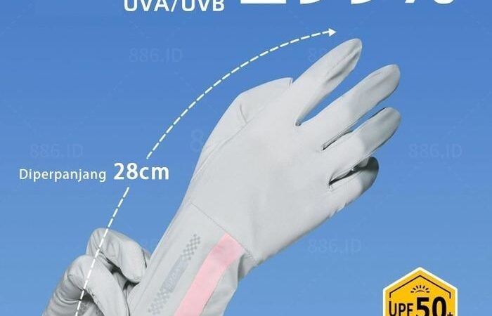| Fitur Unggulan | Touchscreen, anti selip, UPF50+, panjang 28cm |