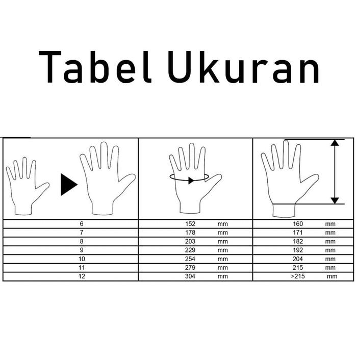 | Standar Perlindungan | EN388:2003 (Risiko Mekanis) & EN420:2003+A1:2009 (Persyaratan Umum) |