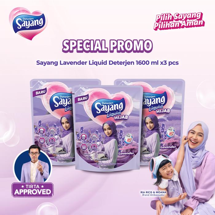 Temukan pengalaman mencuci yang lebih menyegarkan dan lembut dengan deterjen cair Sayang Lavender. Formula khususnya tidak hanya efektif membersihkan noda membandel tetapi juga menjaga warna pakaian agar tetap cerah dan awet. Aroma lavender yang khas memberikan wangi menyegarkan yang tahan lama pada cucian, seolah pakaian baru saja dijemur di taman bunga.
