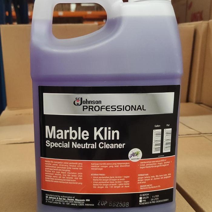 Jaga keindahan dan kilau alami lantai marmer Anda dengan Marble Klin Special Neutral Cleaner dari SC Johnson Professional. Formula pH netralnya dirancang khusus untuk membersihkan permukaan marmer secara efektif tanpa menyebabkan kerusakan, goresan, atau perubahan warna. Cocok untuk pemeliharaan harian di rumah, kantor, hotel, maupun area komersial.