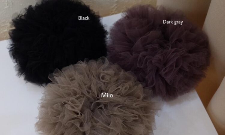 - Tile/Tulle: Kain tipis, ringan, dan berongga dengan tekstur halus (sering digunakan untuk scrunchie agar tidak menarik rambut).