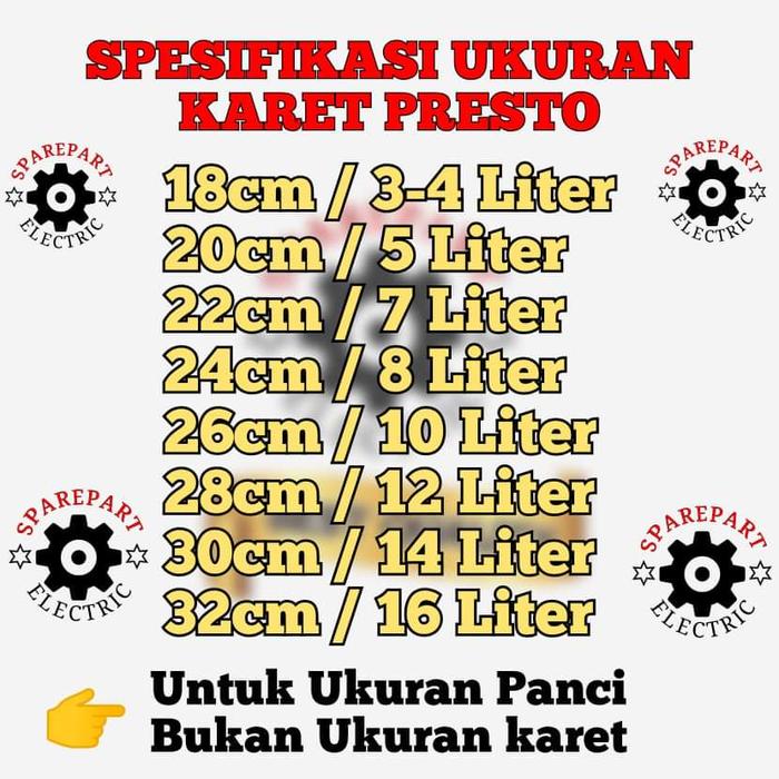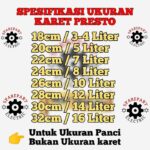 | Ukuran Body Panci Presto (cm) | Kapasitas Panci (Liter) | Perkiraan Diameter Karet Seal (cm) |