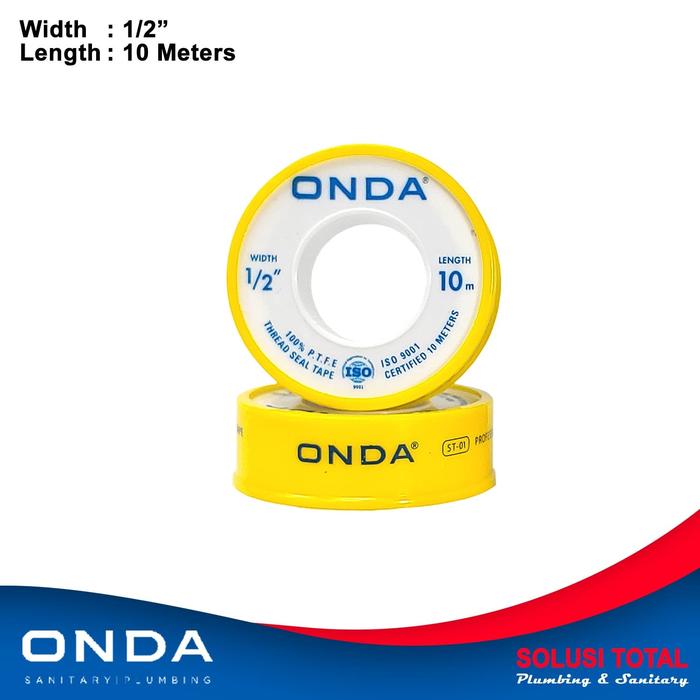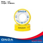 Dapatkan seal tape berkualitas tinggi dari ONDA untuk melindungi instalasi pipa dan keran air Anda. Dengan panjang 10 meter per roll dan lebar 12mm, seal tape ini sangat efektif untuk mencegah kebocoran pada sambungan ulir. Bahan PTFE yang kuat dan tahan lama menjamin seal yang rapat dan tahan terhadap tekanan air.