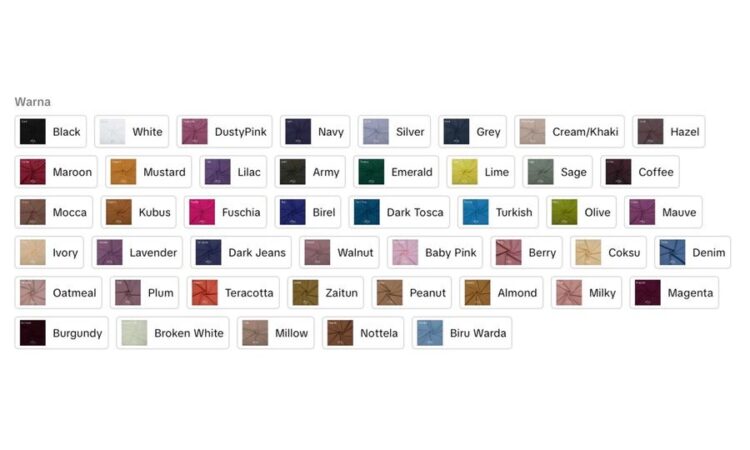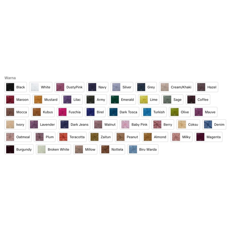 - Matt Hijab: Warna hijab yang tidak mengilap (dof), memberikan kesan sederhana dan elegant.