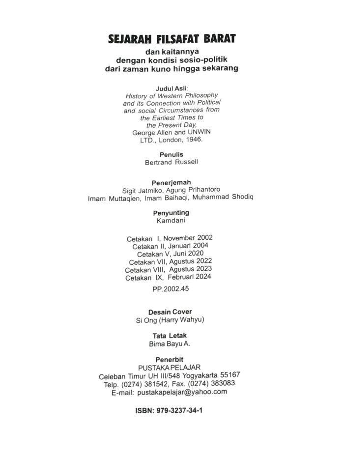 Jelajahi warisan pemikiran manusia dari zaman kuno hingga era modern melalui mahakarya Bertrand Russell, “Sejarah Filsafat Barat”. Buku ini tidak hanya mencatat kronologi ide-ide filsafat, tetapi juga menjalinnya dengan konteks sosial-politik yang melatarbelakanginya. Russell, dengan kejelasannya yang khas, menguraikan kontribusi besar para pemikir seperti Socrates, Plato, Aquinas, Descartes, hingga Nietzsche.