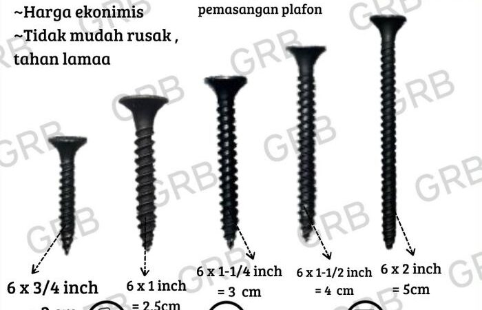 Pastikan Anda memilih ukuran yang sesuai dengan ketebalan rangka dan papan gypsum Anda untuk hasil pemasangan yang optimal.