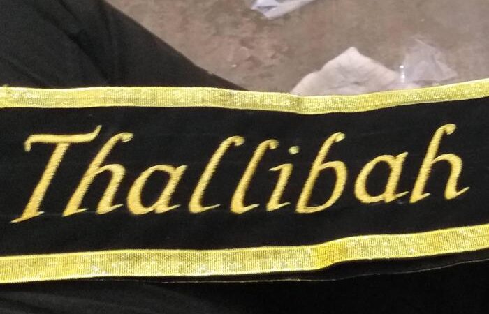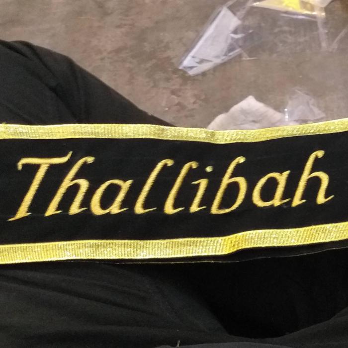| Keunggulan Produk | Bahan Tebal & Kokoh. Bagian belakang selempang dilapisi bludru agar bordiran rapi dan tidak tembus, sehingga nyaman dipakai. |