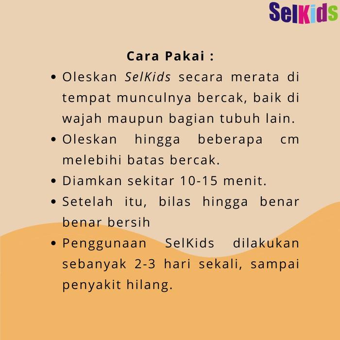 Dirancang khusus untuk bayi dan anak-anak, SelKids efektif mengobati infeksi kulit seperti panu (tinea versicolor) dan kurap dengan formula yang tepat. Kandungan aktif Selenium Sulfide bekerja membasmi jamur penyebab infeksi, menghilangkan gatal, serta mengembalikan kesehatan kulit anak Anda.