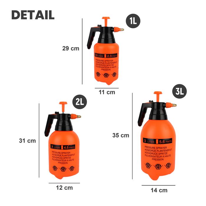 | 2 Liter | 31 cm x 12 cm | – Bahan HDPE tebal, tahan lama, dan tidak mudah pecah – Sistem pompa manual untuk mengatur tekanan – Tombol semprotan otomatis untuk kemudahan penggunaan |