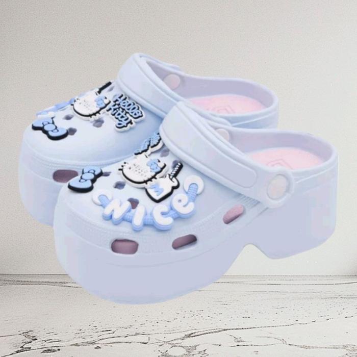 Tampil percaya diri dan menggemaskan dengan Sendal Baim Wedges Hello Kitty! Desainnya yang trendi dan warna-warna cerah membuat setiap penampilan si kecil semakin ceria. Sandal wedges ini memberikan tambahan tinggi hingga 6cm dengan sangat aman dan nyaman untuk anak-anak.