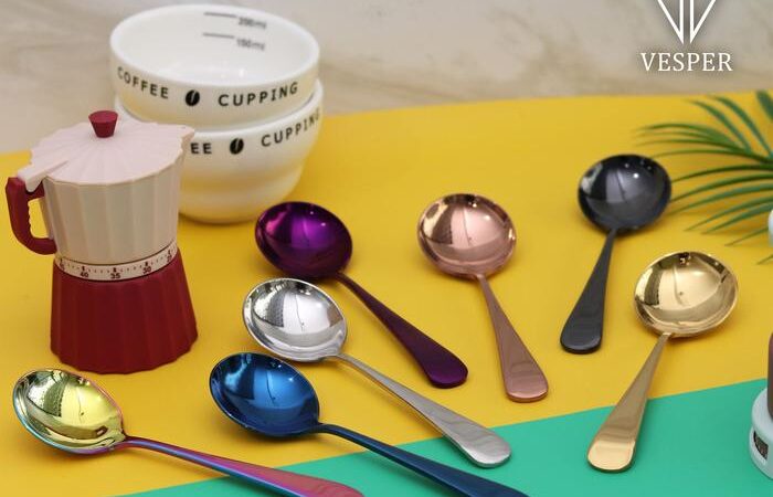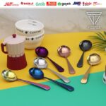 - Cupping Spoon: Sendok khusus yang digunakan dalam proses coffee cupping (proses mencicipi dan mengevaluasi aroma serta rasa kopi). Bentuknya yang bulat dan cekung dirancang untuk menyeduh secangkir kopi dengan sempurna dan menghirup aromanya secara optimal.