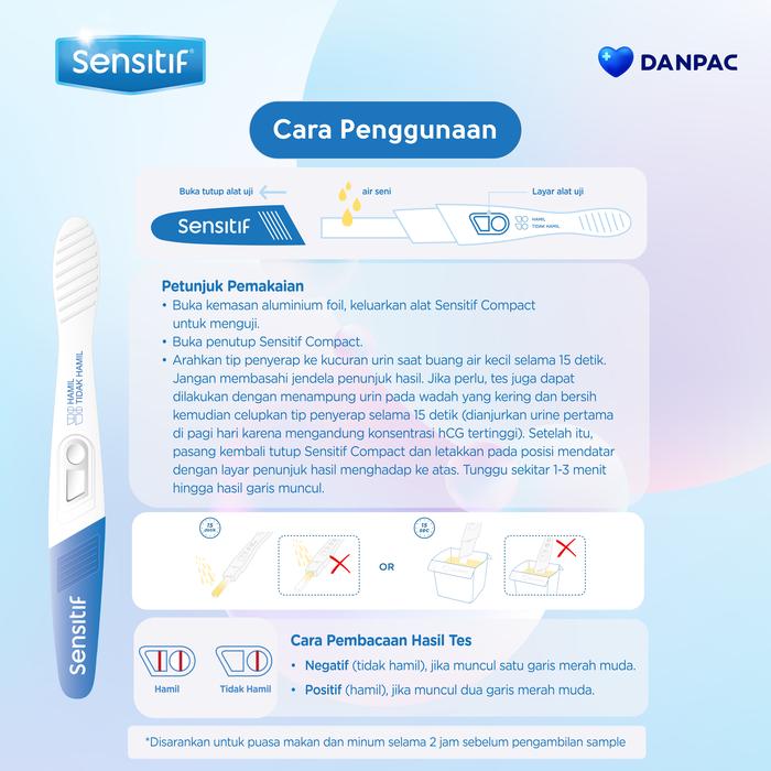 Sebagai alat tes kehamilan nomor 1 di Indonesia dengan akurasi hingga 99.9%, Sensitif Compact memberikan jawaban yang dapat Anda percayai. Alat ini memiliki sensitivitas tinggi untuk mendeteksi kehamilan sejak dini.