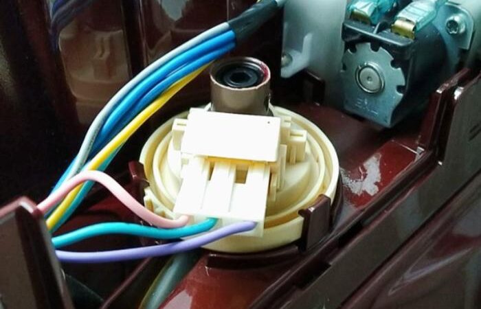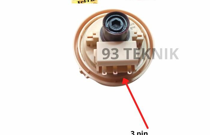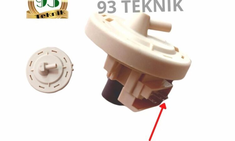 - Sensor Water Level (Sensor Tekanan): Komponen dalam mesin cuci yang berfungsi untuk mendeteksi dan mengatur tinggi rendahnya volume air di dalam tabung. Sensor ini bekerja dengan membaca perubahan tekanan udara di dalam selang yang terhubung ke tabung. Tekanan udara ini berubah sesuai ketinggian air, dan sensor akan mengirimkan sinyal ke papan kontrol (main PCB) untuk menghentikan atau memulai pengisian air.
