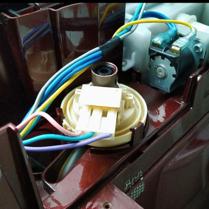 - Sensor Water Level (Sensor Tekanan): Komponen dalam mesin cuci yang berfungsi untuk mendeteksi dan mengatur tinggi rendahnya volume air di dalam tabung. Sensor ini bekerja dengan membaca perubahan tekanan udara di dalam selang yang terhubung ke tabung. Tekanan udara ini berubah sesuai ketinggian air, dan sensor akan mengirimkan sinyal ke papan kontrol (main PCB) untuk menghentikan atau memulai pengisian air.