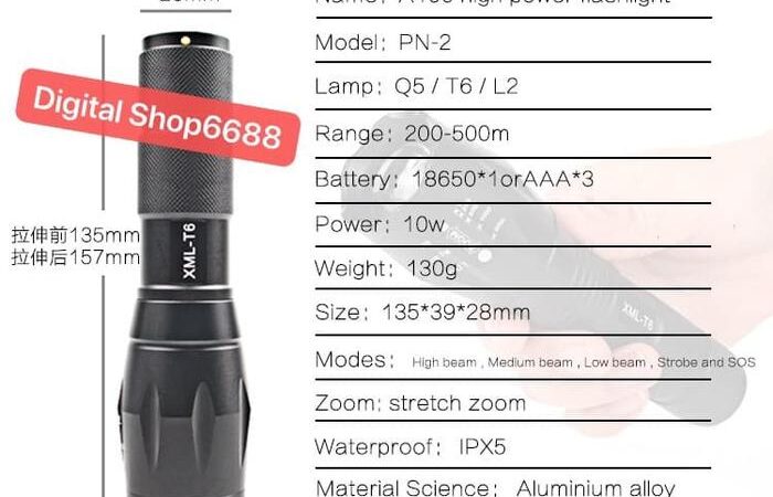 Dengan bodi alloy aluminium yang kokoh dan dilapisi karet, senter ini tahan banting dan nyaman digenggam. Fitur zoomable memungkinkan Anda menyesuaikan fokus cahaya dari spot yang terkonsentrasi hingga pancaran yang luas. Dilengkapi juga dengan bracket sepeda, menjadikannya partner sempurna untuk aktivitas outdoor, darurat, maupun pekerjaan profesional.
