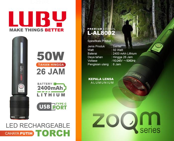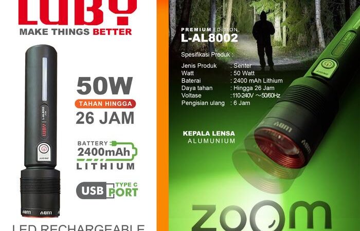 | Fungsi Zoom | Adjustable beam focus, dari pancaran luas (floodlight) untuk area general ke spot yang jauh dan tajam. |