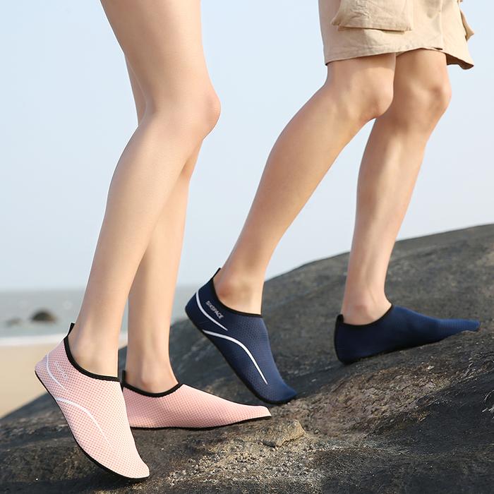 Perlindungan MaksimalMelindungi kaki dari benda tajam seperti kerikil, karang, dan pecahan kulit kerang yang tersembunyi di pasir atau dasar perairan.