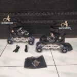 - Frame Aluminium: Kerangka logam yang menjadi tempat roda dipasang. Material aluminium dipilih karena ringan namun sangat kuat dan tahan lama.