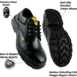 | Fitur Keamanan | Ujung besi (steel toe), water resistant, material mudah dibersihkan |