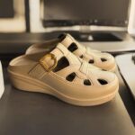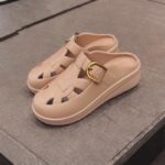 - Wedges: Sepatu dengan sol tebal dari tumit hingga ujung, memberi ketinggian tanpa hak stiletto.