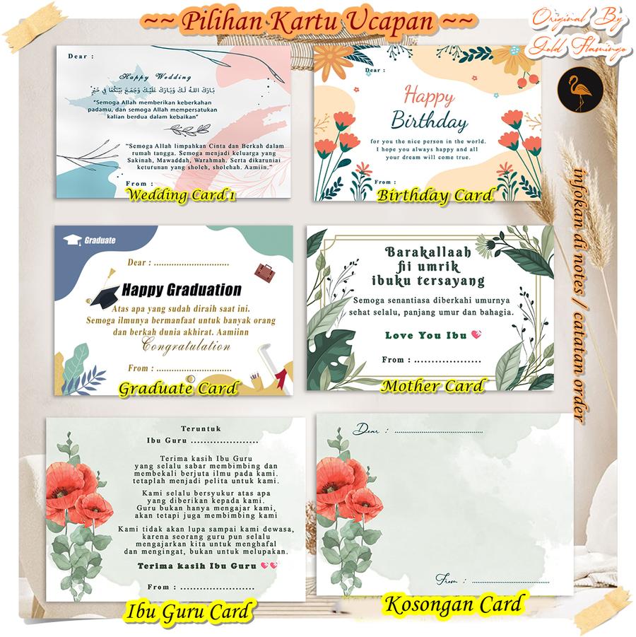 | FREE | – Kartu Ucapan (pilihan) – Box Eksklusif – Paperbag Eksklusif |