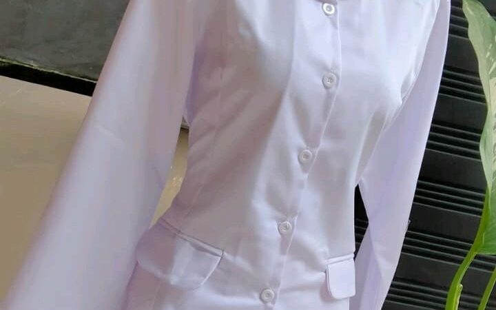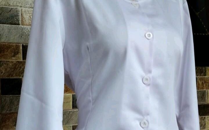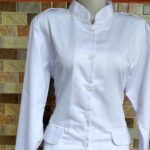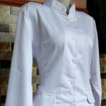 | Model | – Krah Sanghai (desain kerah modis) – Baju cewek body tubuh (pas di badan) – Lengan panjang, ujung tangan non-kancing – 2 saku bawah dengan tutup – Pangkat dipundak (opsional) |