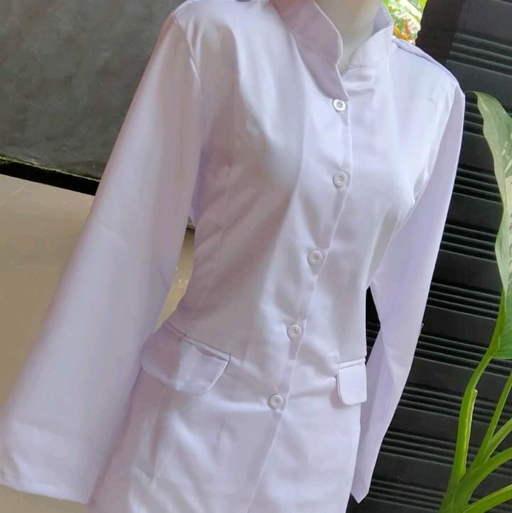 | Model | – Krah Sanghai (desain kerah modis) – Baju cewek body tubuh (pas di badan) – Lengan panjang, ujung tangan non-kancing – 2 saku bawah dengan tutup – Pangkat dipundak (opsional) |