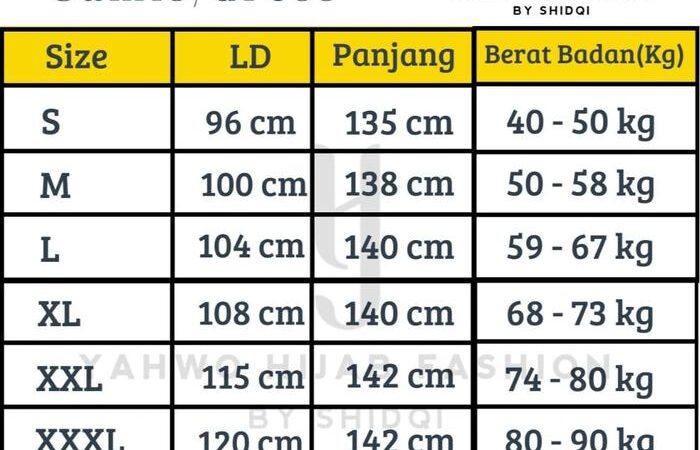 | Ukuran | Lingkar Dada (cm) | Panjang Baju (cm) | Rentang Berat Badan (kg) |