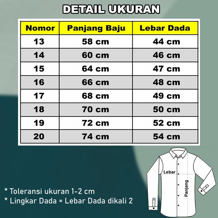 Toleransi ukuran 1-2 cm. Lingkar Dada = Lebar Dada dikali 2.