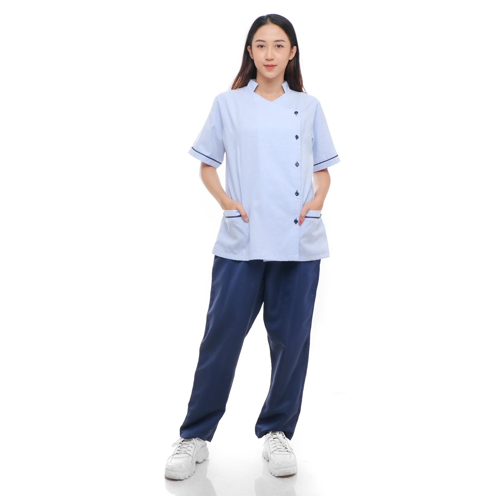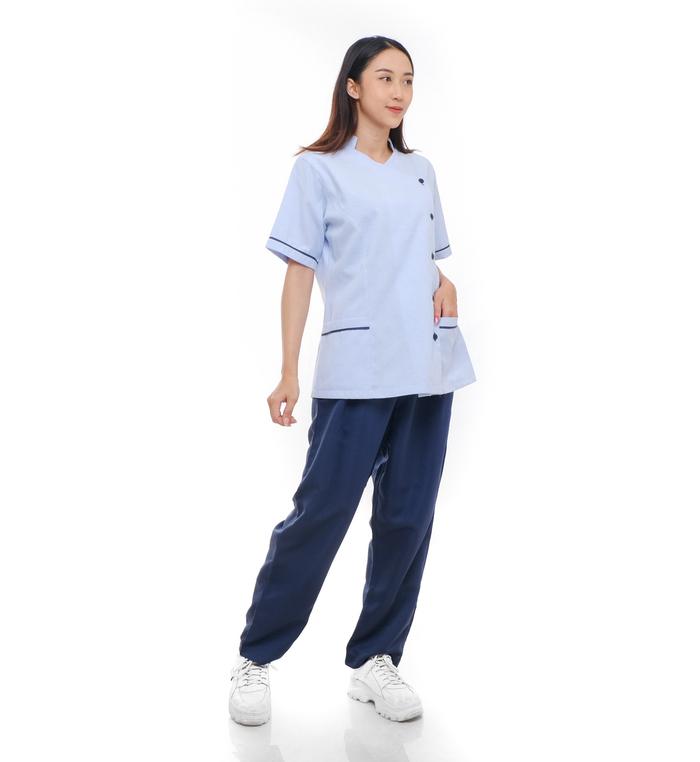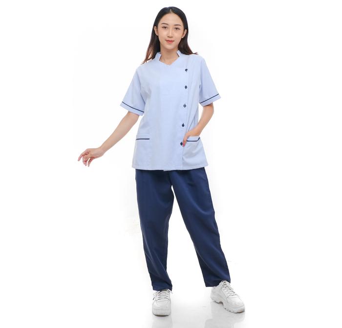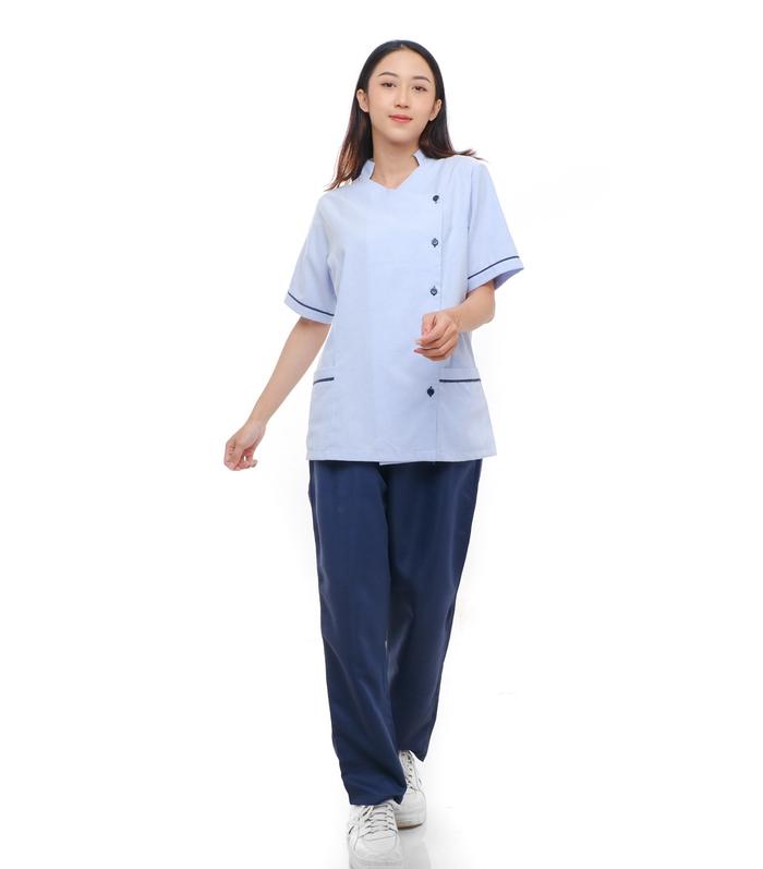 Tampil profesional dan nyaman sepanjang hari dengan Serenity Care Combi Set, solusi sempurna untuk seragam klinik, perawat, dan baby sitter. Setelan ini terdiri dari atasan lengan pendek dan celana panjang, dirancang khusus dengan kancing luar (oka kancing) untuk kemudahan dan kenyamanan maksimal.