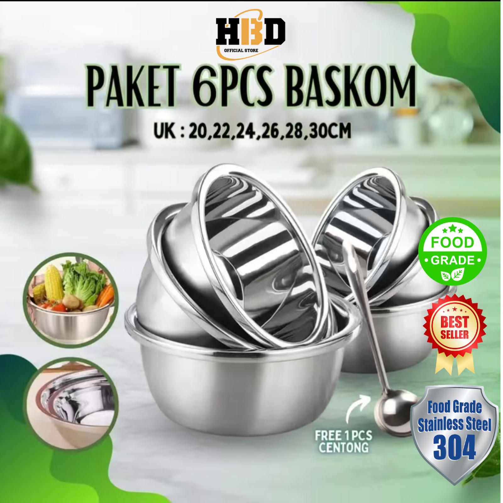 Tingkatkan efisiensi dan organisasi dapur Anda dengan set baskom stainless steel lengkap 6 buah ini. Terbuat dari material stainless steel food grade berkualitas tinggi, set ini anti karat, mudah dibersihkan, dan aman untuk semua jenis makanan. Dalam satu paket, Anda mendapatkan 6 baskok dengan ukuran berbeda (20cm, 22cm, 24cm, 26cm, 28cm, 30cm) sehingga cocok untuk berbagai keperluan memasak.