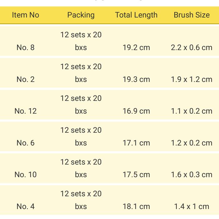 Tersedia dalam berbagai ukuran dalam satu paket untuk memenuhi semua kebutuhan melukis Anda, dari yang terkecil hingga yang terbesar. Dapatkan segera dan rasakan perbedaannya!