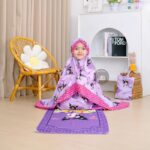 Produk ini dibuat dengan material pilihan yang aman dan nyaman untuk kulit anak. Bahan Polymicro yang digunakan dikenal ringan dan mudah dicuci, cocok untuk aktivitas sehari-hari. Sajadah berbahan fleece memberikan kehangatan dan kenyamanan ekstra.
