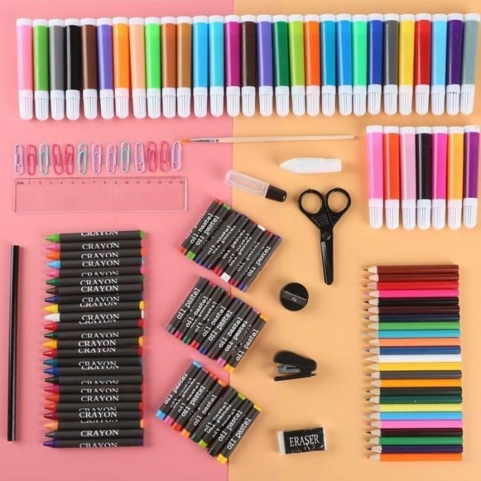 Tak hanya menyenangkan, beraktivitas dengan berbagai alat seni ini juga efektif merangsang perkembangan kognitif, melatih koordinasi mata-tangan, serta mengasah keterampilan motorik halus anak. Jadikan setiap hari sebagai petualangan seni yang berharga! Set ini merupakan hadiah yang sempurna untuk hari ulang tahun, liburan, atau sebagai penyemangat belajar.