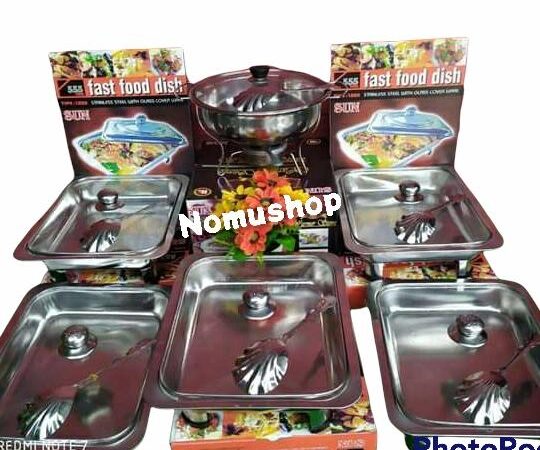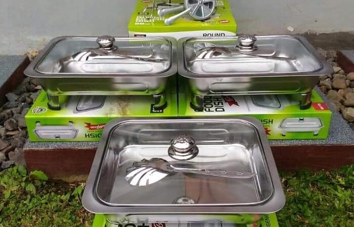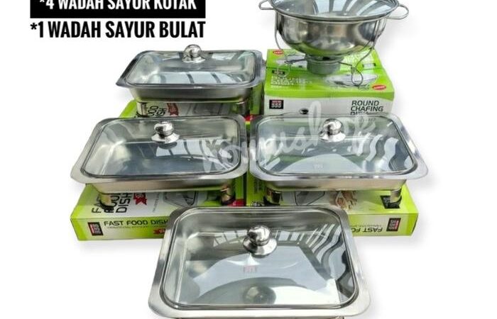 | Set Prasmanan #4/5 | Kotak makanan stainless 32cm x 26.5cm (fast food style) | Free 4-5 sendok bulat + 1 sendok sup bulat/berlubang |