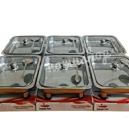 | Set Prasmanan #4/5 | Kotak makanan stainless 32cm x 26.5cm (fast food style) | Free 4-5 sendok bulat + 1 sendok sup bulat/berlubang |