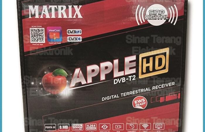 Tingkatkan pengalaman menonton TV Anda dengan Set Top Box Matrix Apple HD. Nikmati siaran televisi digital berkualitas tinggi dengan gambar jernih beresolusi HD dan suara yang lebih tajam. Produk ini kompatibel dengan semua jenis televisi, baik TV tabung lama maupun TV modern.