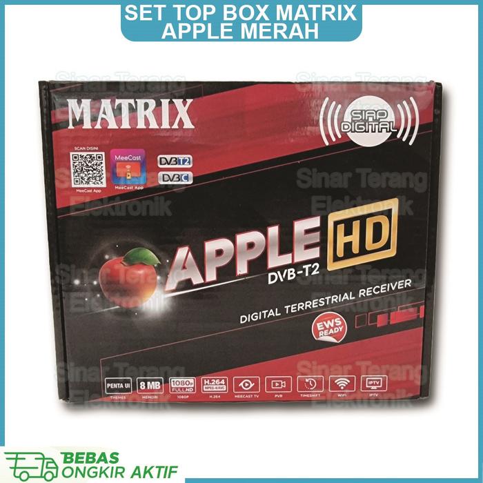 Tingkatkan pengalaman menonton TV Anda dengan Set Top Box Matrix Apple HD. Nikmati siaran televisi digital berkualitas tinggi dengan gambar jernih beresolusi HD dan suara yang lebih tajam. Produk ini kompatibel dengan semua jenis televisi, baik TV tabung lama maupun TV modern.
